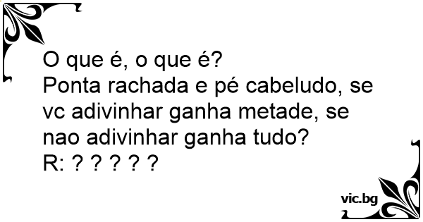 Ponta rachada e pé cabeludo, se vc adivinhar ganha metade, se nao adivinhar ganha tudo?