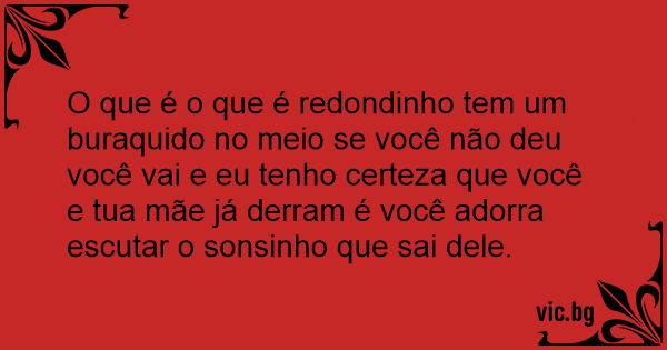O que é o que é redondinho tem um buraquido no meio se você não deu você vai e eu tenho certeza que você e tua mãe já derram é você adorra escutar o sonsinho que sai dele.