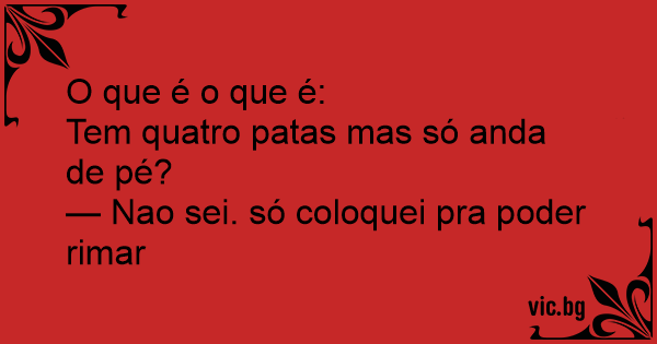 Tem quatro patas mas só anda de pé?