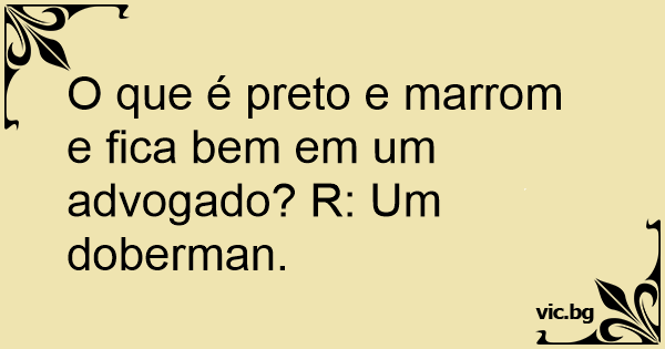 O que é preto e marrom e fiса bem em um advogado? R: Um doberman.