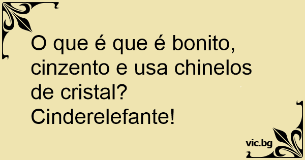 O que é que é bonito, cinzento e usa chinelos de cristal? Cinderelefante!