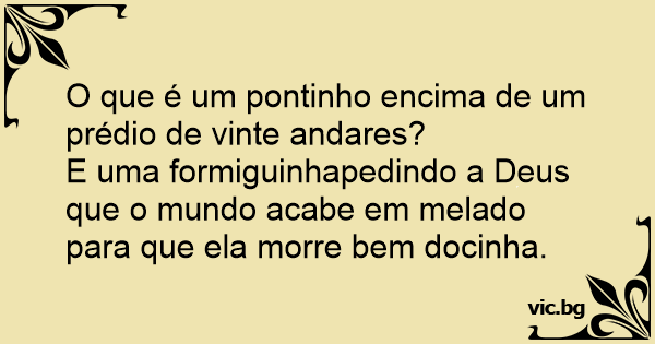 E uma formiguinhapedindo a Deus que o mundo acabe em melado para que ela morre bem docinha.