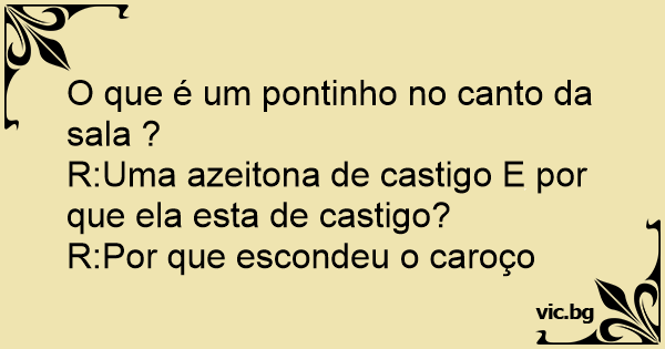 R:Uma azeitona de castigo E por que ela esta de castigo?