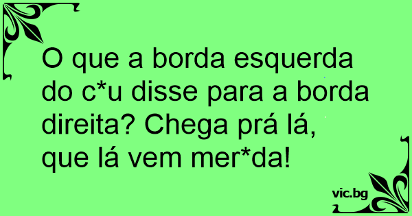 O que a borda esquerda do c*u disse para a borda direita? Chega prá lá, que lá vem mer*da!