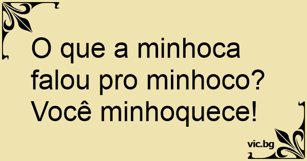 O que a minhoca falou pro minhoco? Você minhoquece!
