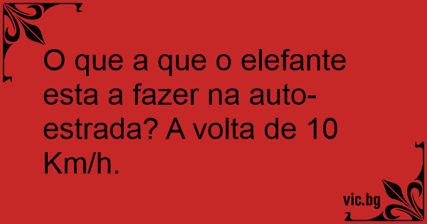 O que a que o elefante esta a fazer na auto-estrada? A volta de 10 Km/h.
