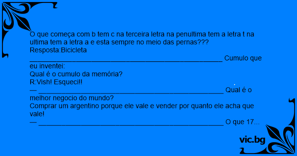Resposta:Bicicleta __________________________________________________ Cumulo que eu inventei: