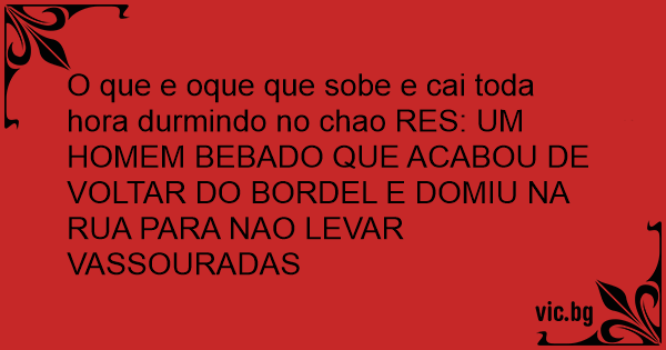 O que e oque que sobe e cai toda hоrа durmindo no chao RES: UM HOMEM BEBADO QUE ACABOU DE VOLTAR DO BORDEL E DOMIU NA RUA PARA NAO LEVAR VASSOURADAS