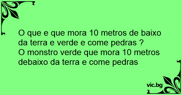 O que e que mora 10 metros de baixo da terra e verde e come pedras ?