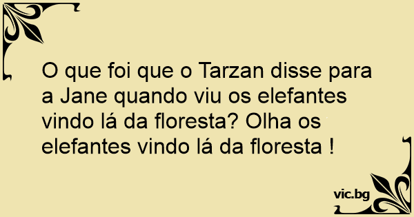 O que foi que o Tarzan disse para a Jane quando viu os elefantes vindo lá da floresta? Olha os elefantes vindo lá da floresta !
