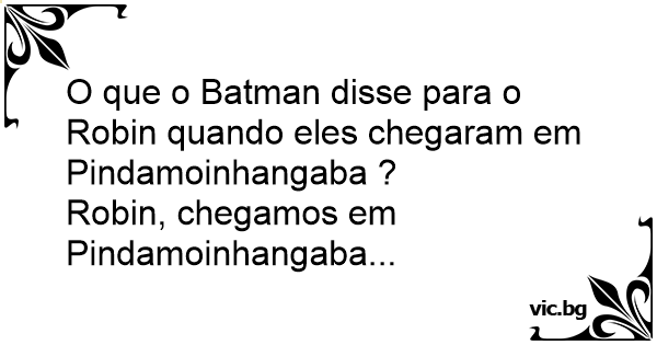 O que o Batman disse para o Robin quando eles chegaram em Pindamoinhangaba ?
