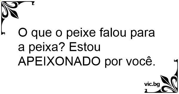 O que o peixe falou para a peixa? Estou APEIXONADO por você.