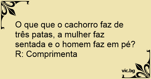 O que que o сасhоrrо faz de três patas, a mulher faz sentada e o homem faz em pé?