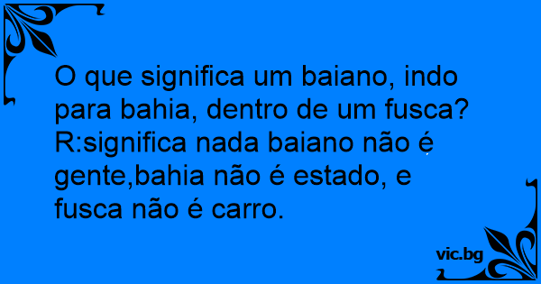 R:significa nada baiano não é gente,bahia não é estado, e fusca não é carro.