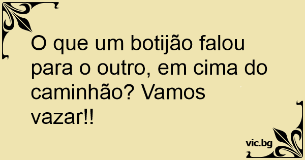 O que um botijão falou para o outro, em cima do caminhão? Vamos vazar!!