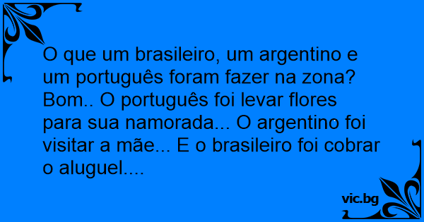 Bom.. O português foi levar flores para sua namorada... O argentino foi visitar a mãe... E o brasileiro foi cobrar o aluguel....