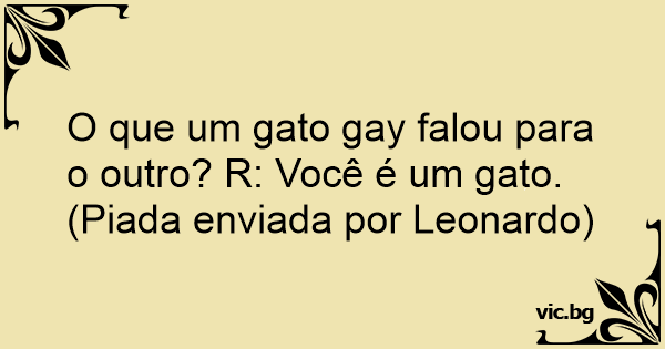 O que um gato gаy falou para o outro? R: Você é um gato.