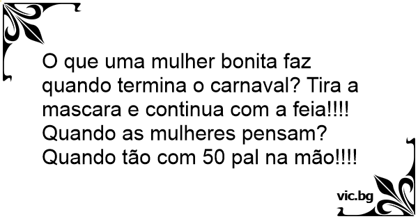 O que uma mulher bonita faz quando termina o carnaval? Tira a mascara e continua com a feia!!!!