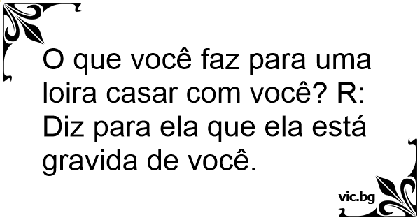 O que você faz para uma loira casar com você? R: Diz para ela que ela está gravida de você.