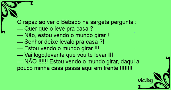 — NÃO !!!!!! Estou vendo o mundo girar, daqui a pouco minha casa passa aqui em frente !!!!!!!!