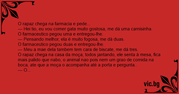 — Hei tio, eu vou comer gata muito gostosa, me dá uma camisinha.
