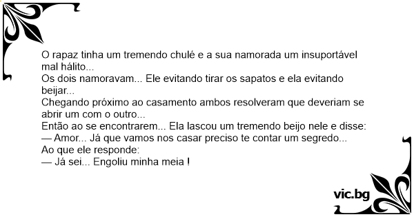 O rapaz tinha um tremendo chulé e a sua namorada um insuportável mal hálito...