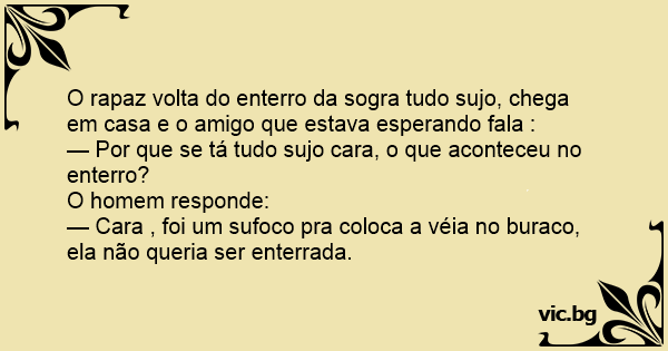 — Cara , foi um sufoco pra coloca a véia no buraco, ela não queria ser enterrada.