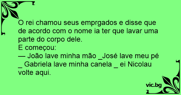 O rei chamou seus emprgados e disse que de acordo com o nome ia ter que lavar uma parte do corpo dele.