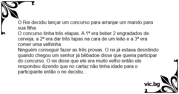 O Rei decidiu lançar um concurso para arranjar um marido para sua filha.