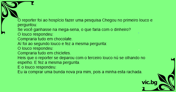 O reporter foi ao hospício fazer uma pesquisa Chegou no primeiro louco e perguntou: