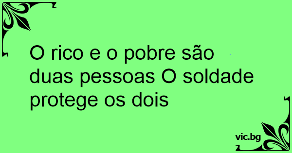 O rico e o pobre são duas pessoas O soldade protege os dois