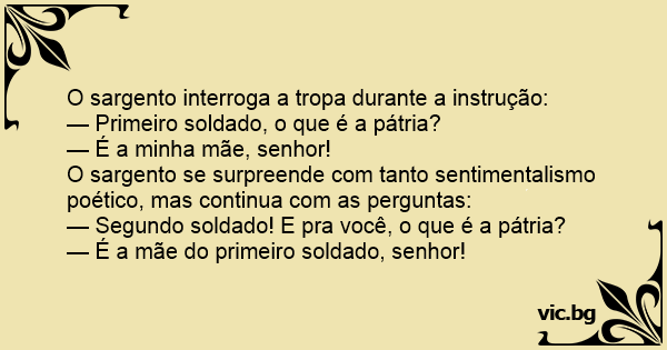 — Segundo soldado! E pra você, o que é a pátria?