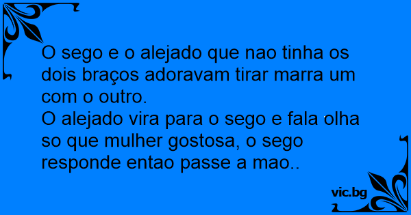 O alejado vira para o sego e fala olha so que mulher gostosa, o sego responde entao passe a mao..