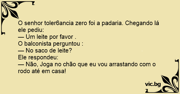 O senhor toler6ancia zero foi a padaria. Chegando lá ele pediu:
