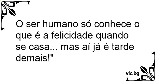 O ser humano só conhece o que é a felicidade quando se casa... mas aí já é tarde demais!"