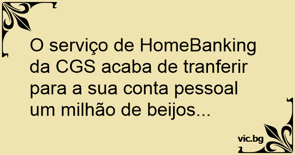 O serviço de HomeBanking da CGS acaba de tranferir para a sua conta pessoal um milhão de beijos...