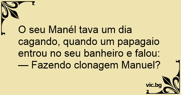 O seu Manél tava um dia cagando, quando um papagaio entrou no seu banheiro e falou: