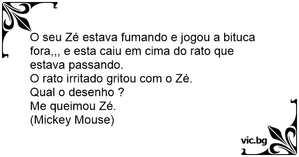 O seu Zé estava fumando e jogou a bituca fora,,, e esta caiu em cima do rato que estava passando.