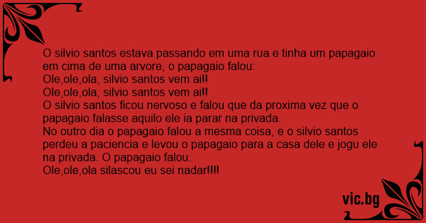 O silvio santos estava passando em uma rua e tinha um papagaio em cima de uma arvore, o papagaio falou:
