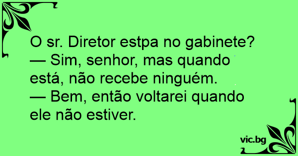 — Sim, senhor, mas quando está, não recebe ninguém.