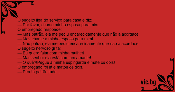 — Mas patrão, ela me pediu encarecidamente que não a acordace.