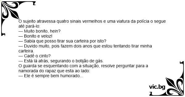 O sujeito atravessa quatro sinais vermelhos e uma viatura da polícia o segue até pará-lo: