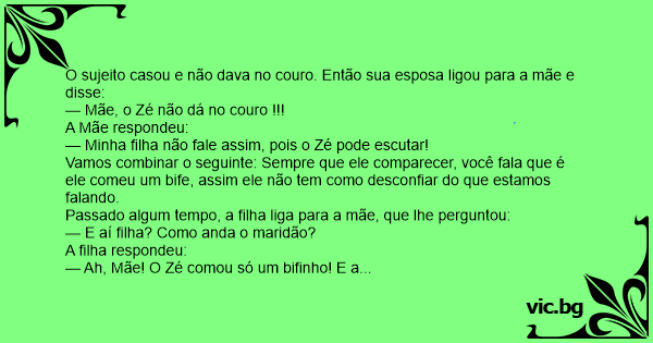 O sujeito casou e não dava no couro. Então sua esposa ligou para a mãe e disse: