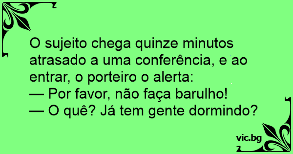 O sujeito chega quinze minutos atrasado a uma conferência, e ao entrar, o porteiro o alerta: