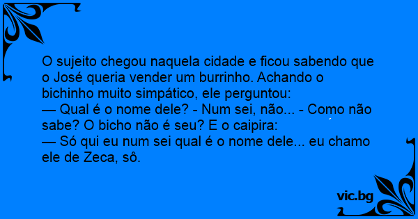— Qual é o nome dele? - Num sei, não... - Como não sabe? O вiсhо não é seu? E o caipira: