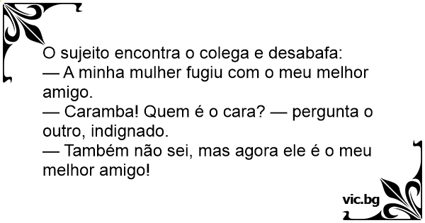 — A minha mulher fugiu com o meu melhor amigo.