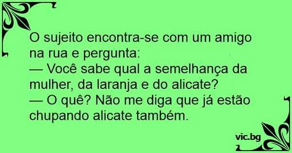 — Você sabe qual a semelhança da mulher, da laranja e do alicate?