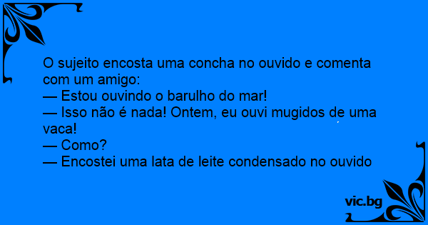 — Encostei uma lata de leite condensado no ouvido