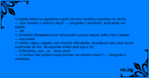 — Que número o senhor calça? — pergunta o vendedor, arriscando um palpite.