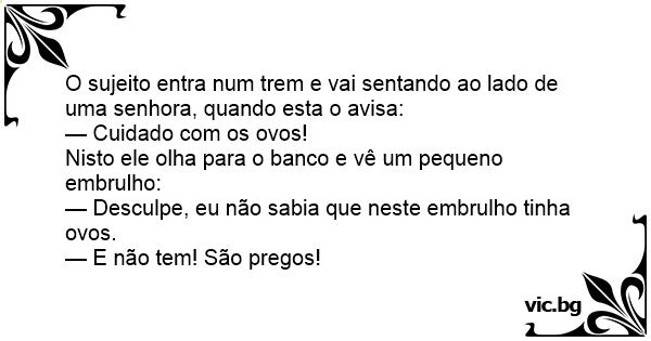 O sujeito entra num trem e vai sentando ao lado de uma senhora, quando esta o avisa: